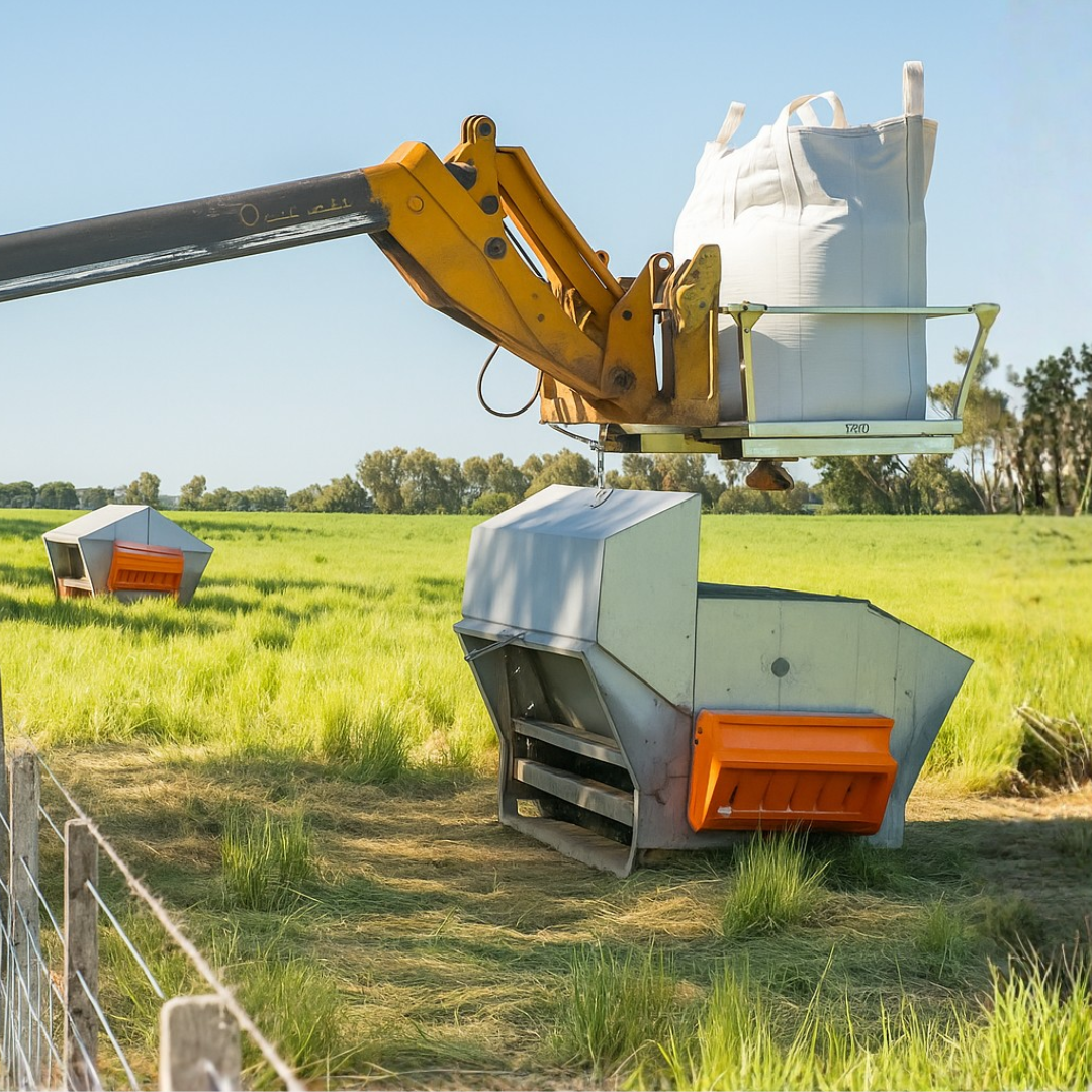 A stable, secure stand that holds and supports bulk bags up to 1,500kg. It keeps bags upright on a stable base and allows safe, controlled emptying. Designed and Certified to Australian Safety Standards.