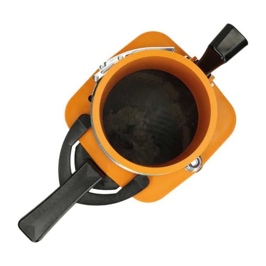 Fledbag® Original: Simply place the Fledbag® on the ground, lower your bulk bag onto it so the spike pierces the bag & lift again. The Fledbag® will stay attached, pull the device down to secure, and use the handle to open or close the valve as needed to dispense content.