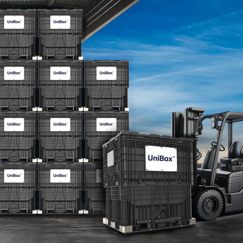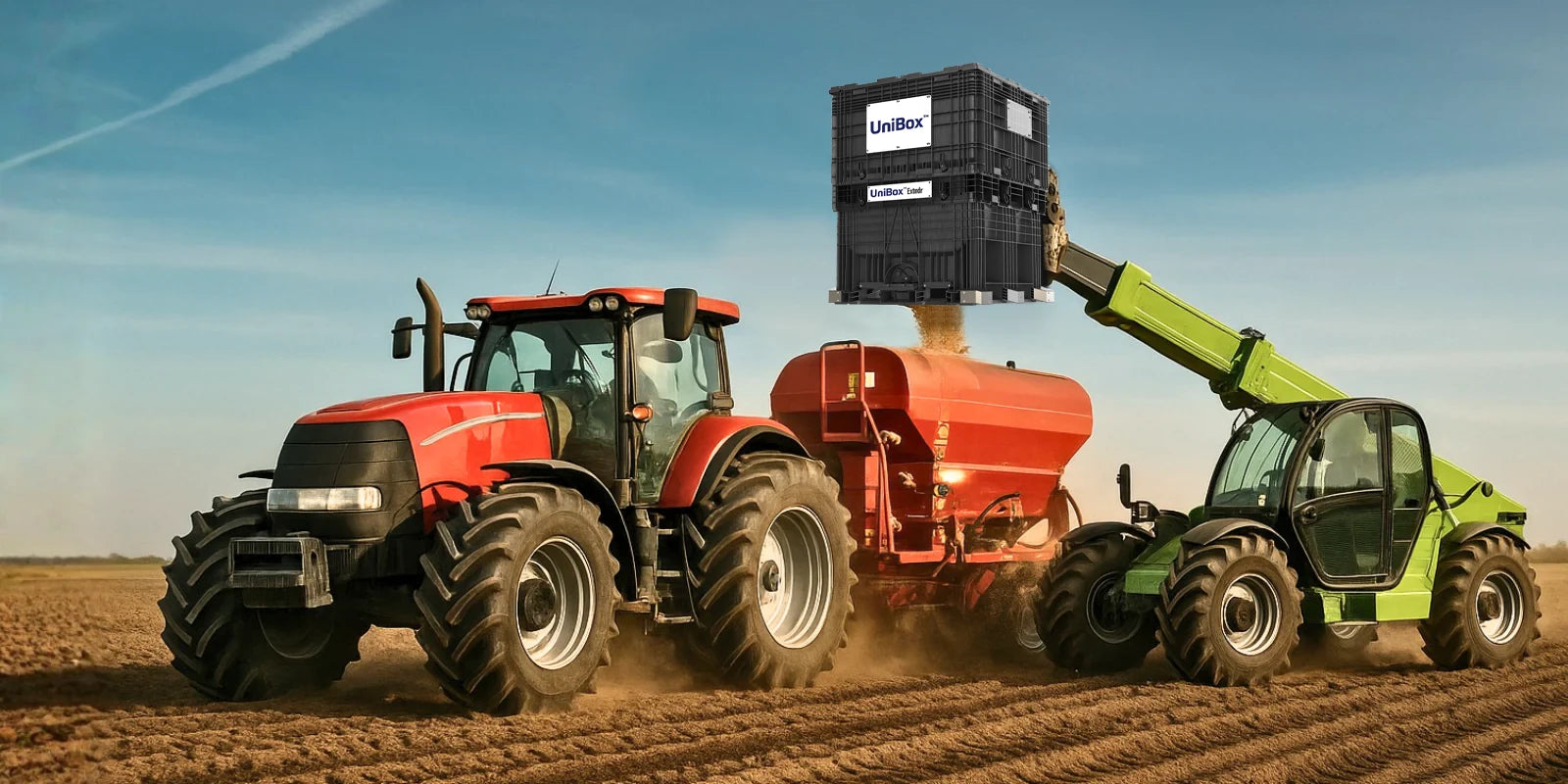 The UniBox™ is a reusable, heavy-duty container designed to safely store, transport and dispense bulk granular products like seed, grain, feed, pellets, or powder. It's built for one-person operation and replaces dangerous bulk bags.
